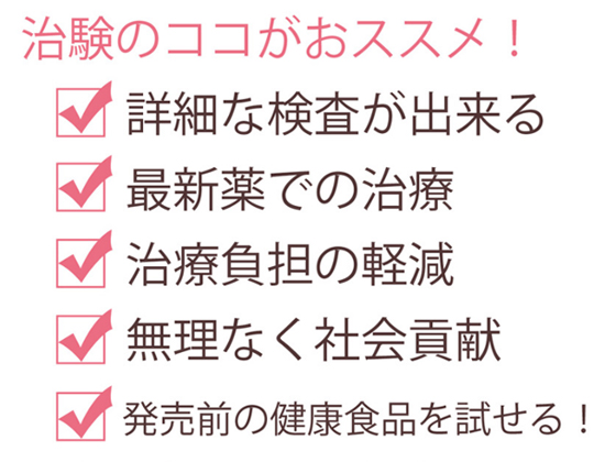 また、治験中も医師や医療スタッフによる健康管理やフォロー体制が整っており、安全性への配慮が徹底されているので安心です。